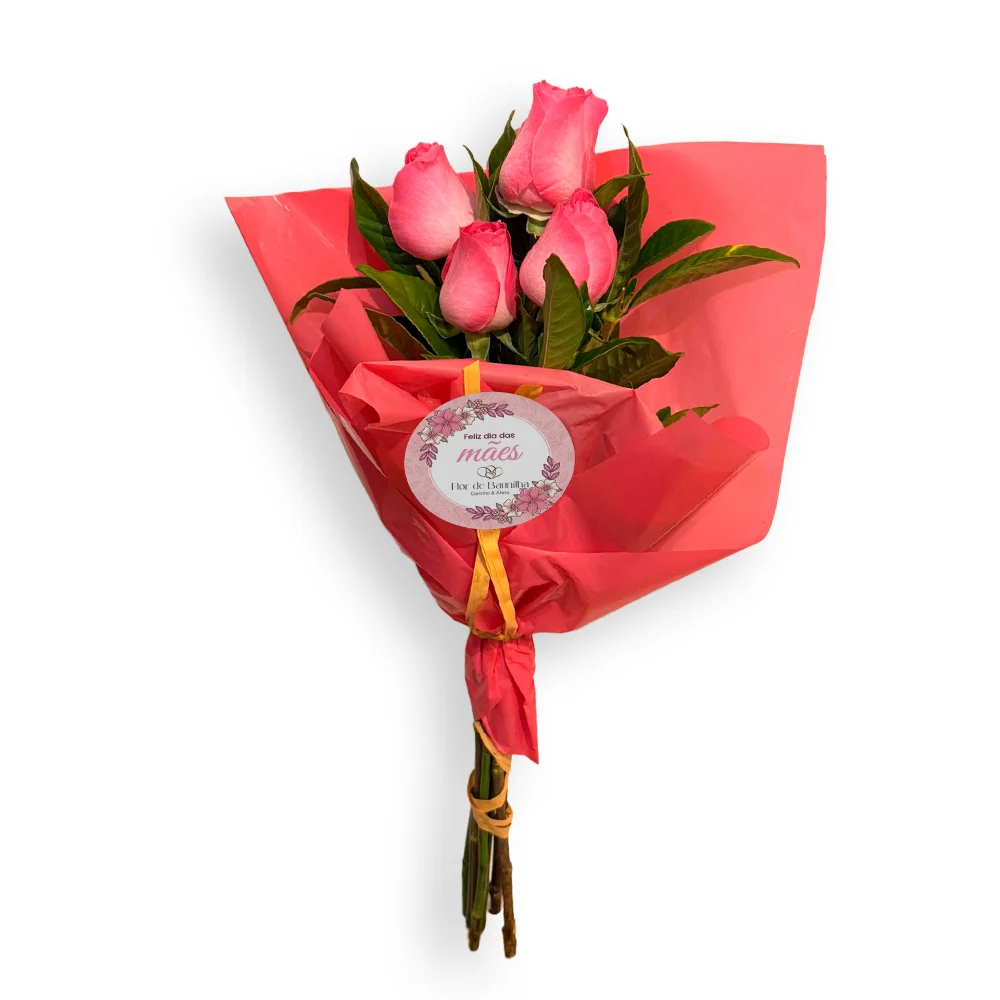 Buquê com 4 rosas cor de rosa.